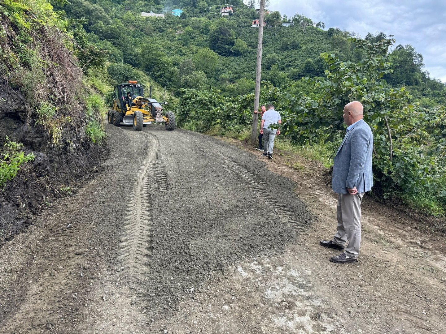 Trabzon Büyükşehir Belediye Başkanı Ahmet Metin Genç, Vakfıkebir ilçesine bağlı Rıdvanlı Mahallesi sınırlarında bulunan Karadağ grup yolunda Büyükşehir Belediyesi’nce başlatılan kuru beton serimi çalışmalarını yerinde inceledi.