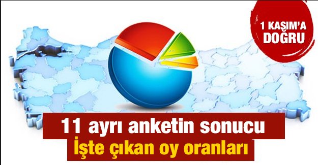 Vikipedia'nın yayınladığı anket sonucu verilerine göre, Eylül 2015 döneminde yapılan anketlerin tamamında AK Parti 1'nci parti durumunda. Erken seçim anket sonuçlarına göre, AK Parti'nin en yüksek oy oranı yüzde 44.2 ile Anar-Denge-GENAR-Pollmark anketinde çıktı. AK Parti'nin en düşük oy oranı ise yüzde 38.2 ile SONAR anketinde çıktı. HDP BARAJI AŞIYOR Artan terör olayları sonrası HDP'nin oy oranında değişiklik olup olmayacağı yönündeki tartışmalara anket sonuçları yanıt verdi. Eylül ayında yapılan anketlerin tamamında HDP yüzde 10 seçim barajını aşmış görünüyor. HDP oy oranının en yüksek olduğu anket yüzde 14.58 ile AKAM tarafından yayınlanırken, en düşük oy oranı yüzde 11.7 ile Andy-R anketinde çıktı.