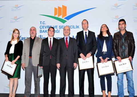 Bakan Bayraktar, konuşmaların ardından, çevre sayfası hazırlayan ve çevre programı yapan medya kuruluşlarının temsilcilerine Çevre Beratı takdim etti.