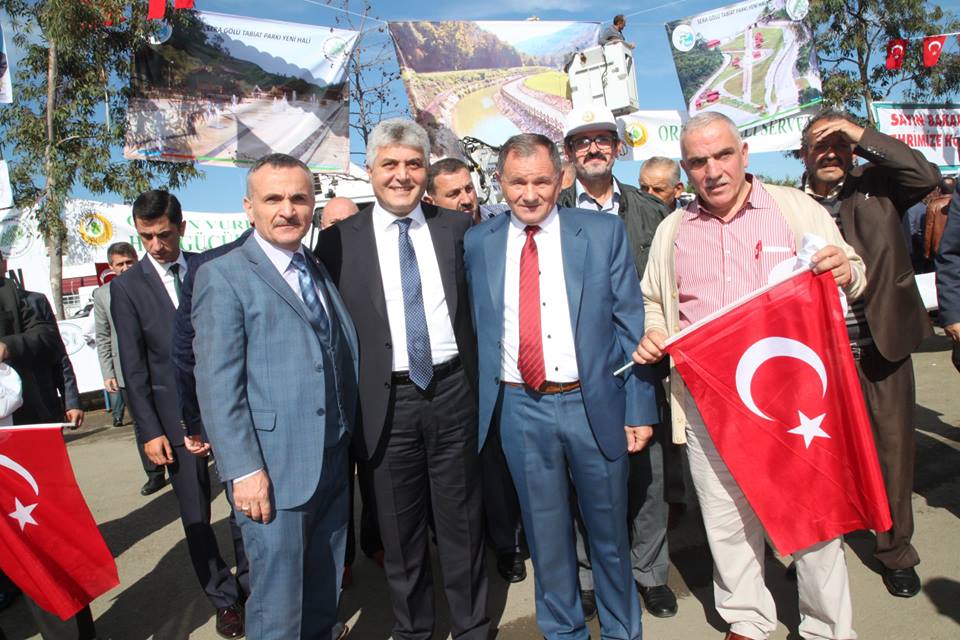 “12 tesisin temeli atılacak açılışları yapılacak. 270 milyon TL Trabzon’umuza, Akçaabat’ımıza hayırlı olsun. Allah (c.c.) bereket nasip etsin” diyerek sözlerine başlayan Bakan Eroğlu, “Sadece bugünü değil geleceği de planlıyoruz. Mustafa Cumur kardeşim rahmetli oldu. O dedi ki ‘şurada Sera Gölü var, berbat bir vaziyette. Buraya güzel bir mekân yap’ dedi. Neticede burayı yaptık, ıslah ettik, gölü temizledik, etrafına güzel mekânlar yaptık. Mustafa kardeşimizin vaziyetini yerine getirmenin mutluluğunu yaşıyoruz” diye konuştu.