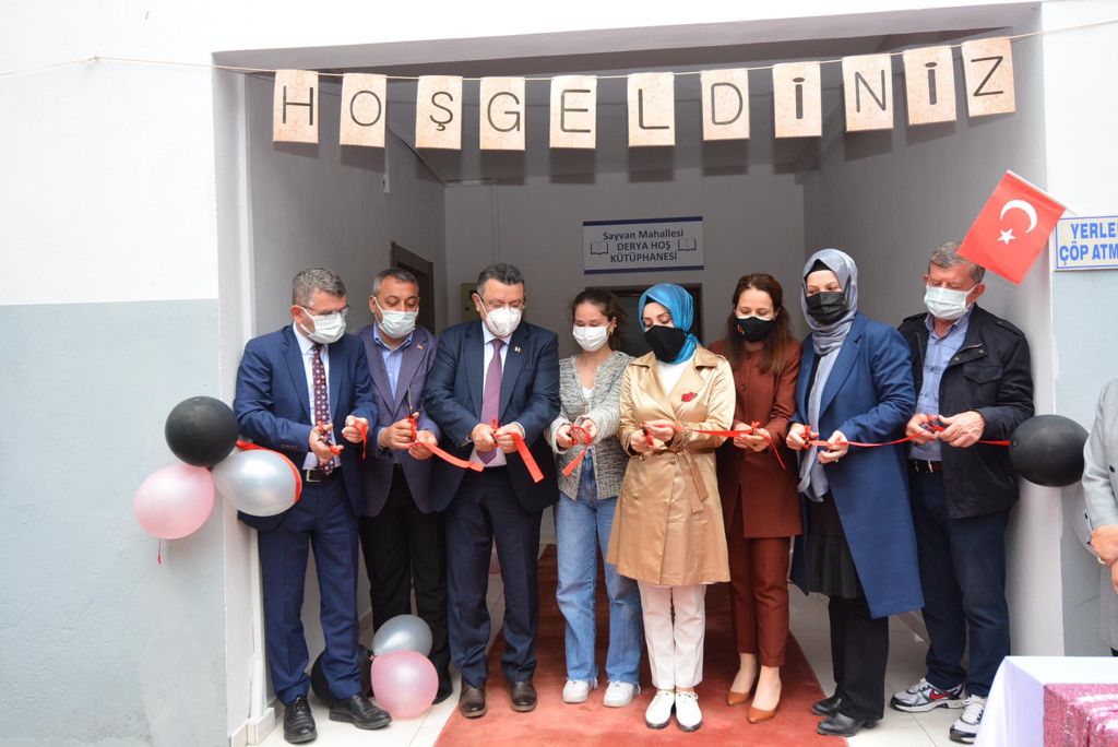 Kitap bağışlarıyla oluşturulan kütüphanede yaklaşık 1300 kitabın yer aldığı bilgisini vererek sözlerini sürdüren Cihan “Kütüphanemizin içerisindeki duvarın bir tarafında dinimizin ilk emri oku, Arapça ifadesiyle ikra, diğer tarafında da Derya kardeşimizin ismi yer almaktadır. Önümüzdeki günlerde kütüphanemize Ufuk Hoş beyin katkılarıyla 4 adet bilgisayar ve ayrıca internet bağlantısı kazandırılacaktır. Bizler de kitap çeşitliliğini artırmak için çalışmalarımızı sürdüreceğiz. Lise, üniversite ve memurluk sınavlarına hazırlanan öğrencilerimiz için de kütüphanemize kitaplar kazandıracağız. Hayırlı olsun” dedi.