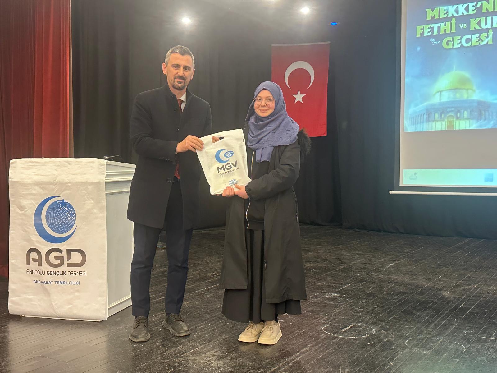 Mekke’nin Fethiile ilgili sinevizyon, şiir dinletileri, ilahi korosu, AGD ortaokul komisyonu öğrencilerininoratoryo gösterisi de misafirler tarafından ilgiyle takip edildi. Konuşmacı olarak programdayer alan Recep Tayyib Erdoğan Üniversitesi öğretim görevlisi Âdem Sadoğlu fethin İslamtarihi ve günümüz açısından önemine değinen bir konuşma yaptı. Program sonunda siyer-inebi yarışmasında dereceye girenlere ödülleri verildi.