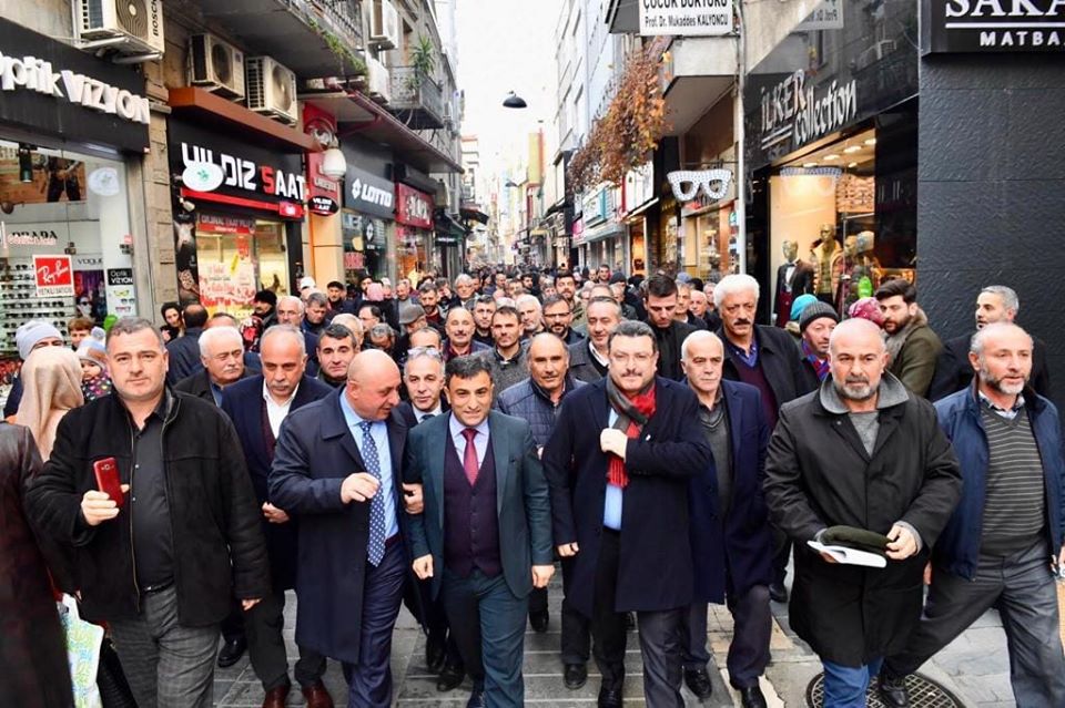 Toplantının ardından, Başkan Altunbaş, Belediye Başkanı Ahmet Metin Genç ve 85 mahalle başkanıyla birlikte şehrin en işlek yerlerinden Kunduracılar Caddesi’nde toplu bir şekilde yürüyerek gövde gösterisi yaptı.