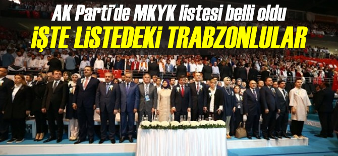 Öte yandan AK Parti'de 50 kişilik Merkez Karar Yönetim Kurulu listesi de belli oldu. Yeni MYK'da 7 Trabzonlu isim yer aldı. Bu isimler; Ayşenur Bahçekapılı, Bülent Gedikli, Berat Albayrak, Aziz Babuşçu, Süleyman Soylu, Mehmet Muş ve Yalçın Akdoğan