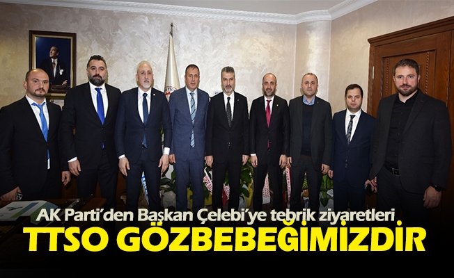 AK Parti Ortahisar İlçe Başkanı Selahaddin Çebi ve yönetim kurulu üyeleri de TTSO Başkanı Erkut Çelebi ve yönetimine hayırlı olsun ziyaretinde bulundu. Çebi, TTSO’nun yeni yönetimine başarı dileklerini iletirken, “Ortahisar ilçemizin 9 mahallesinde 5 bin ton çay toplanıyor. Ortahisar’a orta ölçekli bir çay fabrikası yapılması en büyük dileğimizdir. Ayrıca Ortahisar ilçemize bir organize sanayi bölgesi kurmanın şehrimizin ticaretine ve sanayisine büyük faydası olacaktır” dedi. TTSO Başkanı Erkut Çelebi de, Çebi’nin iki projesine de destek vererek, “Çay fabrikası ve OSB için alanları bulmak sizden, her iki projeye yatırımcı bulmak da bizden” dedi.