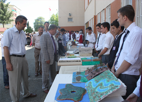 Öğrencilerin ikinci dönem coğrafya derslerinde yaptıkları eserlerin sergilendiği bu programda birbirinden ilginç çalışmalar göz doldurdu. Okulun coğrafya öğretmenleri, Bedriye Bektaş, Süleyman Dilmaç, Mehmet Bayraktar ve Ayşe Öztürk, amaçlarının coğrafya konularını görselleştirerek sevdirmek, öğrenciler arasında kaynaşmayı sağlamak olduğunu belirtti Ayrıca, yaparak-görerek coğrafya konularını sevdirmek,öğrencilerin yaşadıkları coğrafyayı tanıyarak, benimsemelerini sağlamak için 100 den fazla öğrenci ile görsel sunum hazırlanarak oluşturulan sergide Ülkemizin en nadide yeryüzü şekillerinden olan mağaralar peri bacalar Pamukkale travertenleri volkanik dağlar ışıklı Türkiye haritaları ve daha pek çok yeryüzü şekli 3 boyutlu olarak stantlarda yerlerini aldı..Eser sahibi öğrenciler, eserleri hakkında protokol üyelerine detaylı bilgi verdi. Okul müdürü Alaattin Durna bu serginin hazırlanmasında ve planlanmasında emeği geçen başta okul coğrafya öğretmenlerine ve eserleri hazırlayan öğrencilere ve katılımcılara teşekkür etti. Durna, okul olarak hedeflerinin kuran ve sünnet ana ekseninde imam hatip lisesi öğrencilerinin sanat, mimari, resim, musıki, spor, edebiyat tarih ve coğrafya gibi alanlarda da söz sahibi olabilecek birey olarak yetişmeleridir, dedi. Yaptığımız bu çalışma bu hedefimize emin adımlarla yürüdüğümüzün bir göstergesi olduğunu sözlerine ekledi.