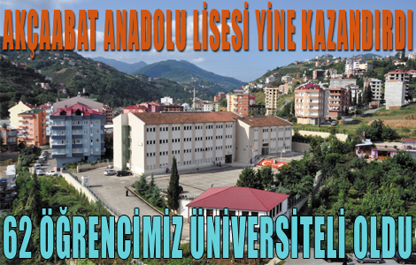 Birçok gencimizi bir üst öğrenime hazırlayan ilçemizin köklü okullarından Akçaabat Anadolu Lisesi 62 öğrenciyi bir yüksek öğrenime göndermenin onurunu yaşıyor.