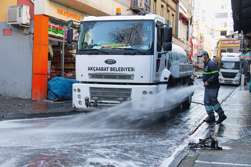 Koronavirüs pandemisinin başladığı günden bu yana büyük bir dezenfekte seferberliği başlatılan Akçaabat’ta çalışmalar tüm hızıyla devam ediyor. Hafta sonu sokağa çıkma kısıtlamalarında da ekipler cadde, sokak ve kaldırımları bol köpüklü su ve dezenfekte ile yıkadılar.
