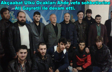 Akçaabat Ülkü Ocakları Ali Ulusal toplantı salonunda Yasin-i Şerif tilaveti ile başlayan programda Ülkücü Hareketin dünü, bugünü ve yarını konuşuldu. Ülkücü Hareketin Trabzon’daki efsane isimlerinden olan Ali Gayretli 1980 öncesi Ülkücü Hareketin çektiği çileleri, Taş medreseleri anlattığı sohbet geç saatlere kadar devam etti.