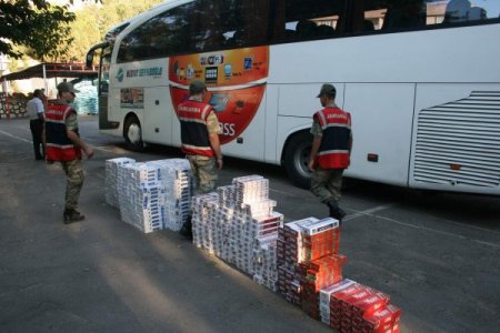 Trabzon'un Akçaabat ilçesinde kaçak içki ve sigara ele geçirildi. Edinilen bilgiye göre ilçenin Kavaklı Beldesi sahil yolu üzerinde, alınan arama kararıyla yol arama ve kontrol faaliyeti yürüten Jandarma ekipleri, özel bir otobüs firmasına ait 2 otobüsü durdurdu. Bagaj kısmında arama yapan Jandarma ekipleri K.G. ve J.G.'ye ait muhtelif markalara ait yaklaşık 600 paket sigara ve kaçak votka ele geçirdi. Kaçak içki ve sigaralara el konulurken, savcı talimatıyla şüphelilerin ifadesi alınarak serbest bırakıldı.