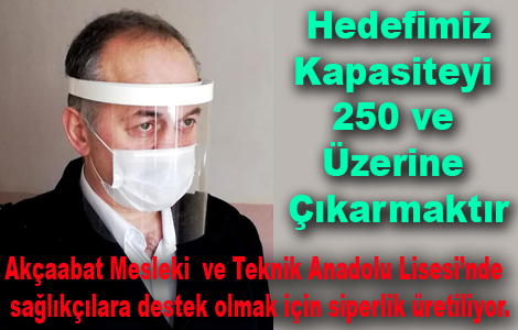 Okul Müdürü H. Emin Güler, mobilya atölyesinde hazır malzemeden günde 250 siperlik üretebileceklerini belirterek “Akçaabat Devlet Hastanesi ve İlçe Sağlık Müdürlüğü ile iletişim halindeyiz. 3D yazıcı ile sınırlı olan üretimimizi mobilya atölyesinde günlük 250’ye kadar siperlik üretimi yapabiliriz “dedi.