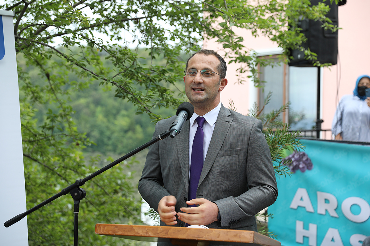 Şehrimizde, özellikle çiftçi kardeşlerimize destek olmak için yaklaşık iki yıl önce Belediyemiz, Kaymakamlığımız ve Akçaabat Ziraat Odası işbirliğinde aronya meyvesi yetiştiriciliği ile ilgili bir süreç başlatmıştık. Başlatmış olduğumuz bu serüvenin başında yaklaşık 40 civarı çiftçimize ücretsiz olarak aronya fidanı dağıtmıştık. Bugün burada üretici kardeşlerimize destek amaçlı vermiş olduğumuz fidanların ürünlerinin hasadını gerçekleştireceğiz. Üretici kardeşlerimize ve şehrimize hayırlı olsun. Bunun yanında Akçaabat Belediyesi olarak tarıma ve üretime katkı sağlamaya ve bu alanda projelerimizi hayata geçirmeye gayret gösteriyoruz. Park ve Bahçeler Müdürlüğümüz bünyesinde iki adet 256 m2 toplamda 512 m2 serayı oluşturduk. Kurmuş olduğumuz bu seralarda, bir taraftan çiftçilerimize destek amaçlı aromatik meyve fidanları üretileceği gibi diğer taraftan da Belediyemizin ihtiyacı olan, peyzaj düzenleme çalışmalarımız kapsamında kullanabilecek, süs bitkilerini ve çiçekleri de yetiştirerek Belediyemizin maliyetlerini düşürmüş olacağız.