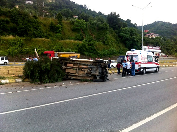Akçaabat’tan Samsun istikametine gitmekte olan özel bir şirkete ait Nail Şengün yönetimindeki araç, Mersin Mahallesinde sürücüsünün direksiyon hâkimiyetini kaybetmesi sonucu kaza yaptı.