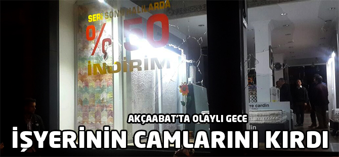 Olay Akçaabat Dürbinar mahallesinde akşam saatlerinde meydana geldi. Olayda  C.T isimli şahıs mülk sahibi dayısına ait olan ve içerisinde kiracısı bulunan bir işyerinin camlarını kırdı. Her iki yola cephesi bulunan işyerine sahil yolundaki cam kapıyı kırarak içeri giren şahıs, işyerinin tüm camlarını kırdı. C.T'nin mülk sahibi olan dayısı ile arasında olan husumetten dolayı camları kırdığı iddia edildi.