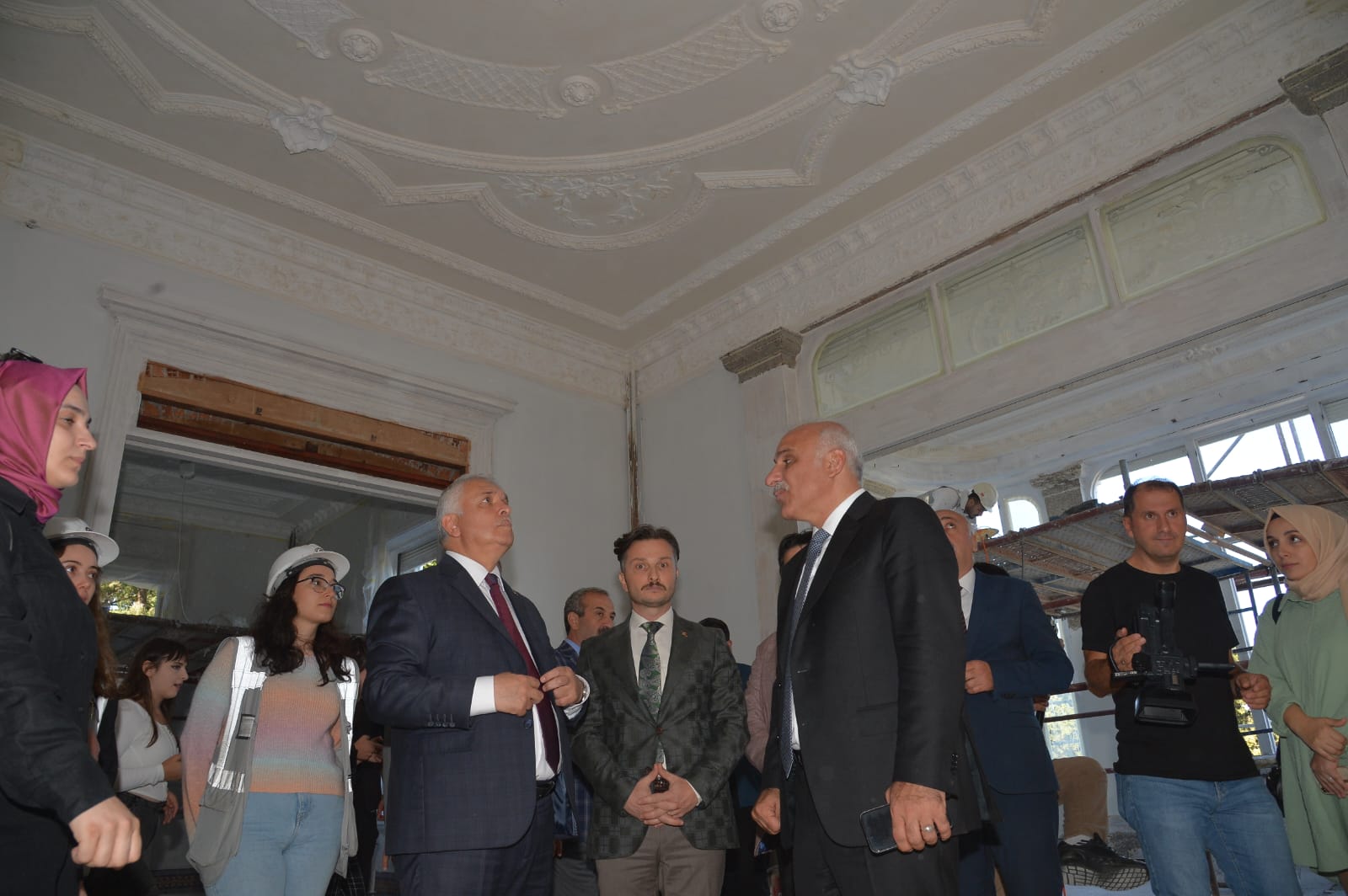 Atatürk Köşkü’nü adına yakışır hale getirmek istediklerini her fırsatta dile getiren Büyükşehir Belediye Başkanı Murat Zorluoğlu, restorasyon çalışmalarını da sık sık yerinde inceliyor. Trabzon Valisi Aziz Yıldırım’la birlikte Atatürk Köşkü’ne giden Başkan Zorluoğlu, son durumu yerinde gördü. Basın mensuplarının da ilgi gösterdiği inceleme sırasında, çalışmalardan memnun kalan Başkan Zorluoğlu, yürütülen süreçle ilgili Vali Yıldırım’a detaylı bilgi verdi.