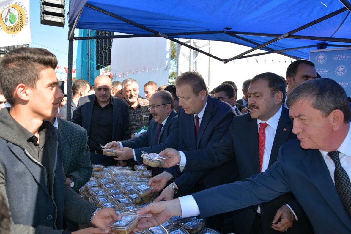 Trabzon Büyükşehir Belediyesinin aşure günü dolayısıyla Akçaabat ilçesinde gerçekleştirdiği aşure dağıtımına katılan Bakan Eroğlu; beraberindeki Trabzon Valisi Yücel Yavuz, Trabzon Büyükşehir Belediye Başkanı Dr. Orhan Fevzi Gümrükçüoğlu, Ortahisar Belediye Başkanı Ahmet Metin Genç, Akçaabat Belediye Başkanı Şefik Türkmen ve AK Parti Trabzon İl Başkanı Haydar Revi ile birlikte vatandaşlara aşure ikramında bulundu.