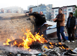 Trabzon'da , Başbakan Recep Tayyip Erdoğan'ın pazar günü temel atma törenine katılacağı Akyazı Stadı ve Spor Tesisi'nin yapılacağı dolgu alanının yanında bulunan balıkçı barınaklarının yıkılmak istenmesi, tepkilere neden oldu. Bir kayığı ve balıkçılık malzemelerini ateşe veren barınak sahipleri, sorunun çözüme kavuşturulmaması halinde Başbakan Erdoğan'ın da katılacağı temel atma töreni öncesinde tüm barınakları yakacaklarını söyledi. Tepkiler üzerine barınakların yıkımı ertelendi.       Akyazı Beldesi’nde dolgu alanında yapımı devam eden stat ve spor tesisi projesinin yer aldığı alanın yanında bulunan Beşirli Çınaraltı Su Ürünleri Kooperatifi üyelerine ait 65  barınak için belediye yıkım kararı aldı. Ancak yıkım için gelen belediye görevlileri barınak sahiplerinin tepkisiyle karşılaştı. Kendilerine yıkım kararına ilişkin herhangi bir tebliğ yapılmadığını ileri süren barınak sahipleri ile yıkım ekibi arasında gerginlik yaşandı. Kendilerine alternatif sunulmamasından, yıkım için süre verilmemesinden yakınan balıkçılar, bir kayık ile barınaklarındaki bazı eşyaları ve balıkçılıkta kullandıkları malzemeleri yakarak tepkililerini sürdürdü. Tepkilerin yoğunlaşması üzerine belediye yıkım ekibi bölgeden çekildi.             'SORUN ÇÖZÜLMEZSE BARINAKLARI YAKACAĞIZ'               Yanan kayığın çevresinde toplanan barınak sahipleri ve balıkçılar, sorunlarının halledilmemesi halinde, pazar günü Başbakan Recep Tayyip Erdoğan’ın da katılacağı Akyazı Stadı ve Spor Tesisi temel atma töreni sırasında tüm barınakları ateşe vereceklerini söyledi.