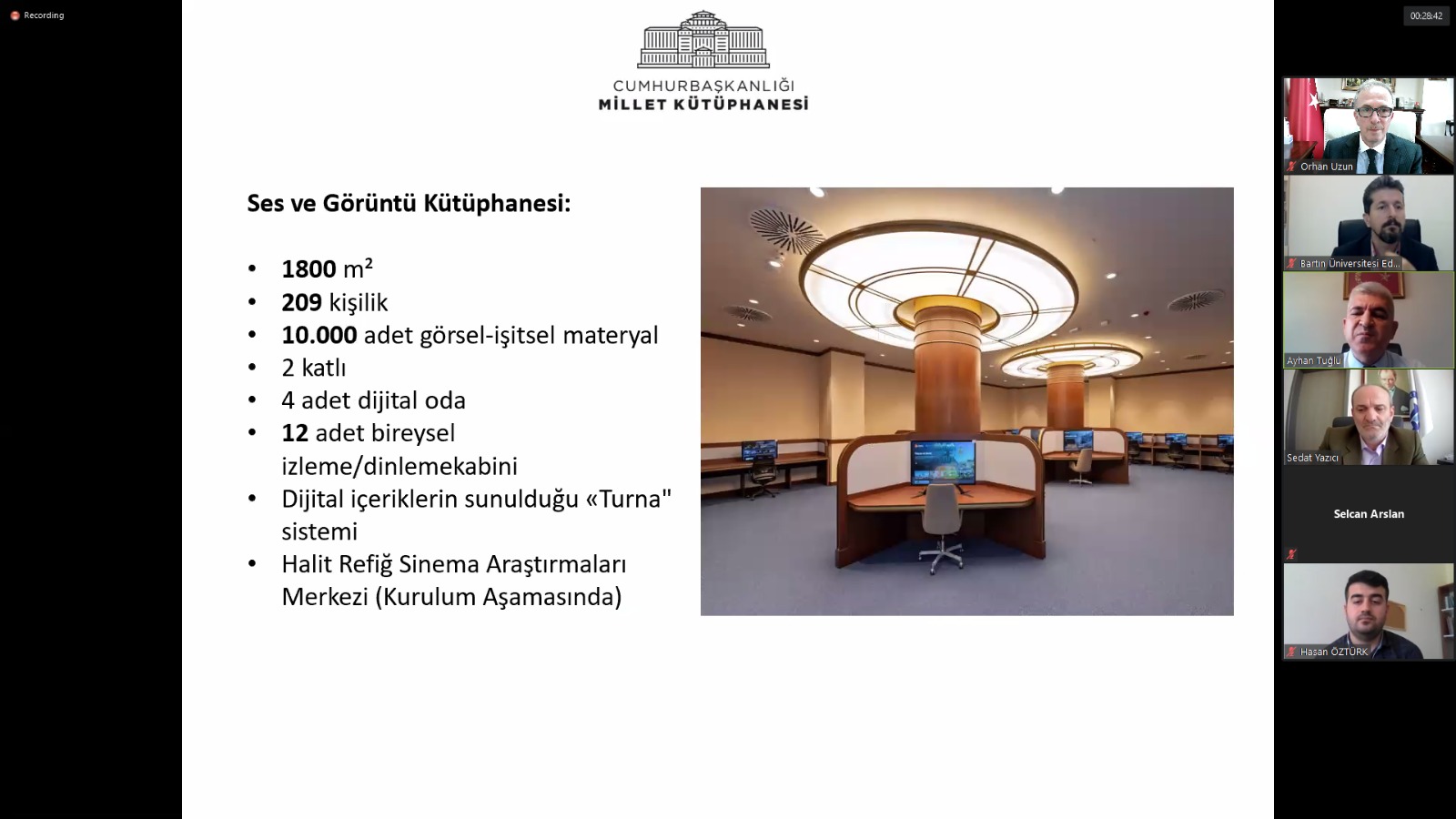 Bartın Üniversitesi Edebiyat Fakültesi Bilgi ve Belge Yönetimi Bölümü tarafından “Milletin Kütüphanesi” adlı çevrimiçi konferans gerçekleştirildi. Yoğun ilginin olduğu etkinliğe Bartın Üniversitesi Rektörü Prof. Dr. Orhan Uzun, Rektör Yardımcısı Prof. Dr. Sedat Yazıcı ile akademisyen ve öğrencilerin yanı sıra farklı illerde görev alan kütüphaneciler katıldı.