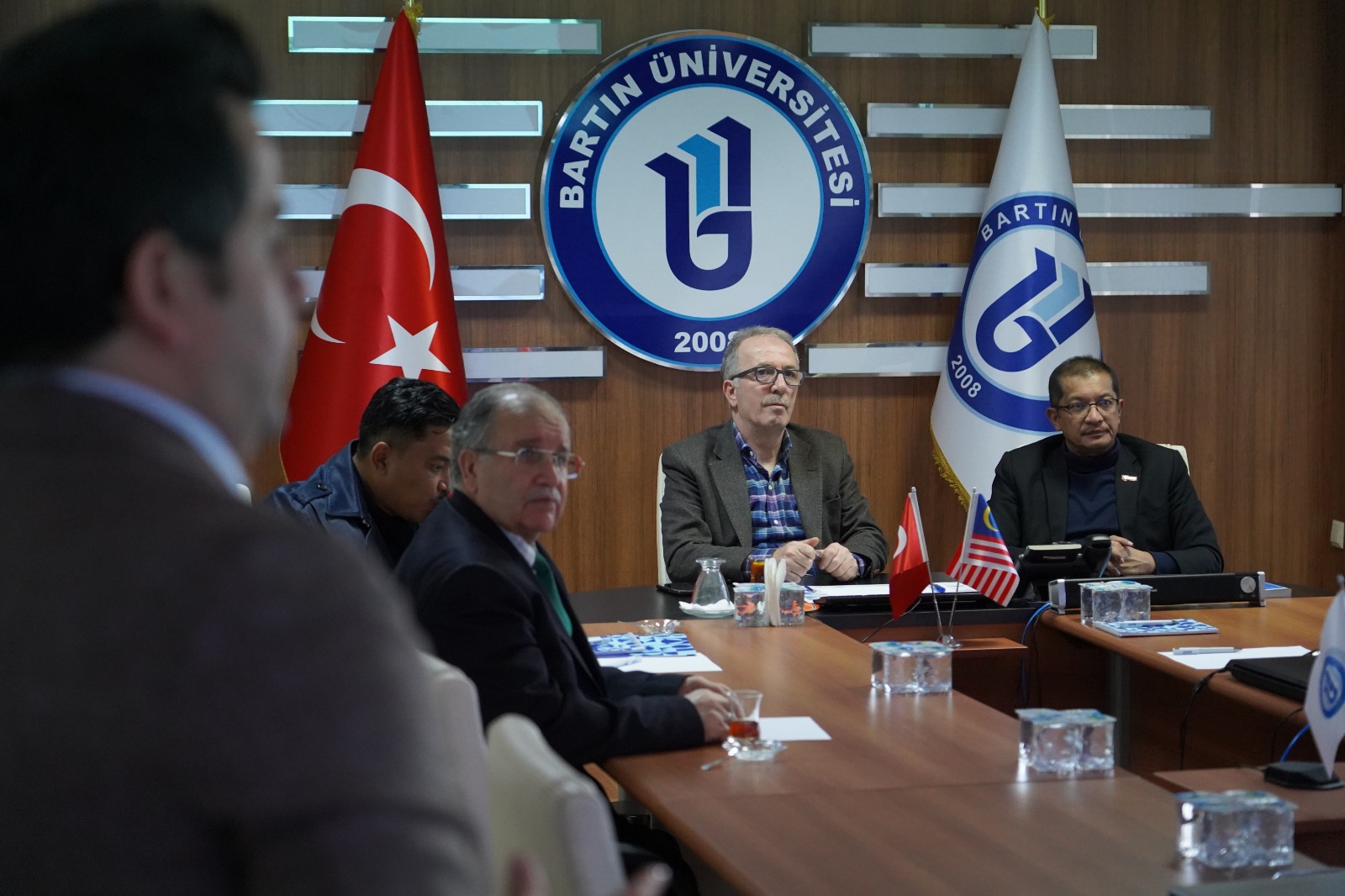 Bartın’a gelen Malezya Putra Üniversitesi Rektörü Sulaiman, Nanobilim ve Nanoteknoloji Merkezi Müdürü Prof. Dr. Nizar Hamidon ile Özel Kalem Sharudin Sahrani, Rektör Uzun tarafından karşılandı. BARÜ Genel Sekreteri Doç. Dr. Said Ceyhan’ın da yer aldığı ziyarette BARÜ Erasmus Kurum Koordinatörü Öğr. Gör. Dr. Ahmet Yirmibeş tarafından bilgiler verildi. Ardından üniversiteler arasında İkili İşbirliği (MoU) Anlaşması imzalanarak Erasmus Uluslararası Kredi Hareketliliği KA171 kapsamında mutabakata varıldı.
