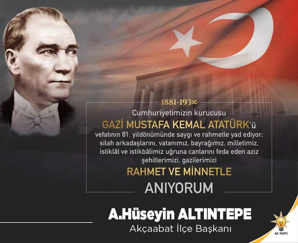 Yetiştiği ve takdire şayan mücadelesini verdiği döneminden çağ aşarak her zaman için yetişmekte olan gençlerimizin ışığı olan, fikirleri ile yaşatılmayı hak eden mücadele azim ve kararlılığı günümüze meşale olarak tüm kesimlerce kabul gören Gazi Mustafa Kemal Atatürk’ü, bizlere emanet ettiği Cumhuriyet çatısı altında, ilerleme ve aydınlanma hedeflerine kararlılıkla ilerleyen Türk Milleti olarak 7’den 70’e hasretle anıyoruz. Ona ve bu vesileyle gözüpek, cesaretleri dünya timsali silah arkadaşlarına, şehit ve gazilerimize rahmet diliyoruz.”
