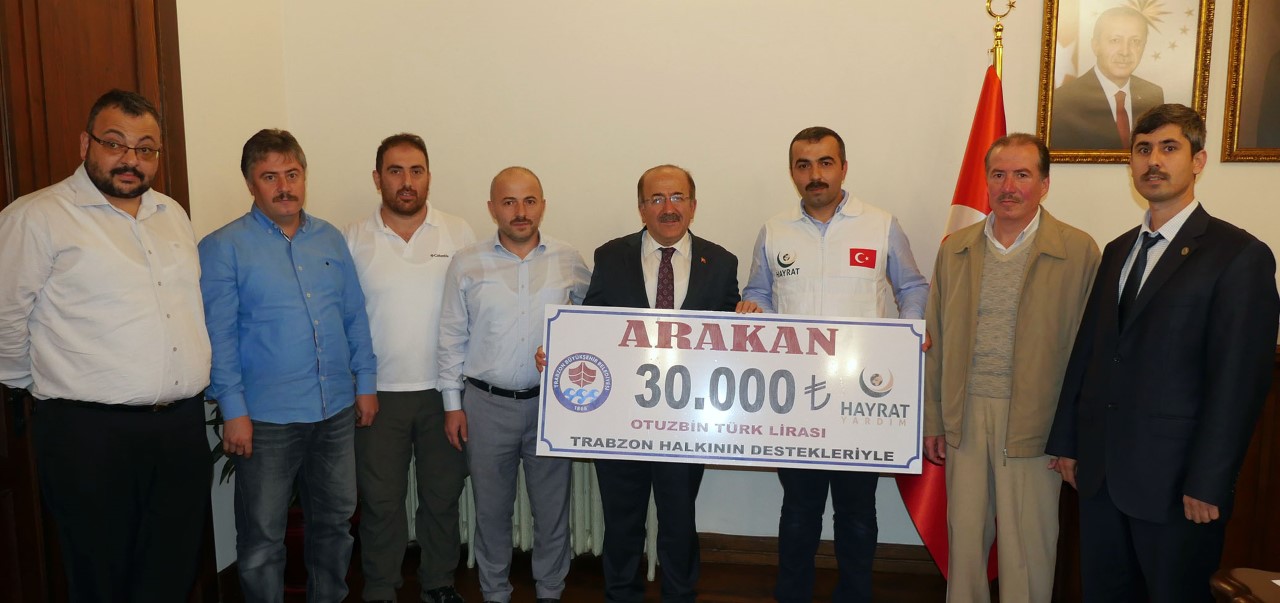 30 bin TL’lik yardım çekini Hayrat İnsani Yardım Derneği Trabzon Temsilcisi Fahrettin Köroğlu’na teslim eden Gümrükçüoğlu, “Trabzon Büyükşehir Belediyemiz ve Hayrat Derneğimizin ortak gayretleriyle, Müslüman oldukları için soykırıma tabi tutulan Arakan’daki kardeşlerimize ilk desteğimizi deruhte etmiş bulunmaktayız. Allah (c.c.) emeği olan herkesten razı olsun. Cumhurbaşkanımız Sayın Recep Tayyip Erdoğan’ın Birleşmiş Milletlerde (BM) söylediği gibi, dünya beşten büyüktür. İnançlarından ötürü soykırıma tabi tutulanlara destek olmamak, katillere ses çıkartmamak bir insanlık suçudur. Türkiye Cumhuriyeti Devleti Arakan’daki Müslüman kardeşlerinin yanında yer almaya devam edecektir” dedi.