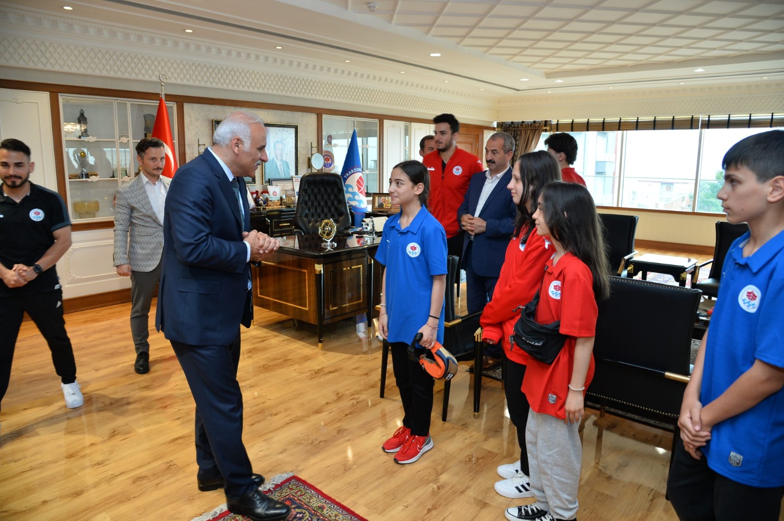 Hentbol takımımız Süper Lig’e çıktı. Bireysel sporcularımıza da çok önem veriyoruz. Trabzon’da yetişen, başarılı olan ya da olması yüksek potansiyele sahip sporcularımızın kendi bünyemizde kalmasını sağlamak için yoğun gayret gösteriyoruz. Yine Türkiye’de 2.’sini Trabzon’da açtığımız Sporcu Performans Ölçüm ve Yetenek Merkezi başta olmak üzere spor projelerimizi birbiri ardına hayata geçiriyoruz. Çeşitli branşlarda ülkemizde ve dünya genelinde elde ettikleri başarılarla göğsümüzü kabartan sporcularımızı yürekten tebrik ediyorum. Kendi değerlerimize sahip çıkmaya ve onlara kol kanat germeye devam edeceğiz” ifadelerini kullandı. Ziyaret, Başkan Zorluoğlu ve sporcuların hatıra fotoğrası çektirmesinin ardından sona erdi.