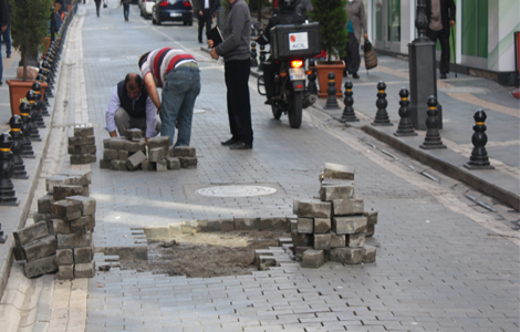 Bakım dolayısıyla araç trafiğine kapatılan caddede kırık taşların değiştirileceği ve zemin güçlendirmesi yapılacağı öğrenildi.
