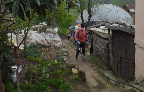 Arpacılı Muhtarı Hakan Kalaycı Mahallesini İlaçladı,Maske Dağıttı.