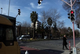 Manisa'nın en işlek yerlerinden biri olan Doğu Caddesinde trafik polisleri, kırmızı ışıkta karşıdan karşıya geçen yayaları denetledi.