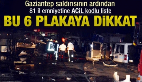 Gaziantep'te çalıntı araç ile bombalı saldırı yapılmasının ardından Emniyet Genel Müdürlüğü, çalıntı ve şüpheli araçlar konusunda alarma geçti. Bölgede durumundan şüphe edilen 6 araç plakaları 81 il emniyet müdürlüklerine acil kodu ile uyarıldı. Gaziantep'te geçtiğimiz hafta 9 vatandaşın hayatını kaybettiği bombalı saldırının çalıntı araç ile gerçeklemesi polisi hareket geçirdi.