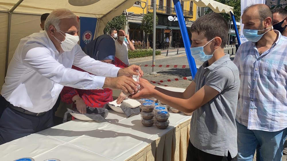 Muharrem ayının 10. gününe denk gelen aşure günü nedeniyle Trabzon Meydanı’nda Büyükşehir Belediyesi aşure dağıtımı gerçekleştirdi.