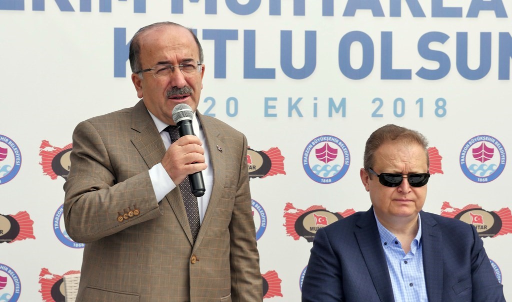 Trabzon Büyükşehir Belediye Başkanı Dr. Orhan Fevzi Gümrükçüoğlu ise Cumhurbaşkanı Recep Tayyip Erdoğan’ın muhtarlık müessesine verdiği öneme dikkat çekti. “Burada çok güzel bir Trabzon birlikteliğini yaşıyoruz” diyen Gümrükçüoğlu, “19 Ekim Muhtarlar Günü muhtarlık tüzel kişiliğinin yükseltilmesi, halkın temsilcisi, demokrasinin paydaşı olarak yaptığınız vazifelerin daha iyi anlaşılmasını temin edecek bir ilamdır. Tabi ki bütün arkadaşlarımız bunu yapanın Devlet Başkanımız Sayın Recep Tayyip Erdoğan olduğunu biliyorlar. Sayın Cumhurbaşkanımızın Külliye’de sizleri kabul edip, şehirlerin, ülkemizin dünyanın meselelerini sizlerle paylaşmayı ihmal etmediğini görüyor ve yaşıyorsunuz. Ben hiçbir devlet başkanının böyle bir tutum ve davranışı olmadığını biliyorum. O sizlere güveniyor, biz sizlere çok güveniyoruz. Halkın içinde olup halkın meselelerini bizatihi yaşayan olduğunuzu biliyoruz, görüyoruz. Bugüne kadar olduğu gibi bundan sonraki gayretlerinizde de her zaman yanınızda olacağımızı ifade ediyoruz. Biz sizlerle beraber çalışıyoruz” şeklinde konuştu.
