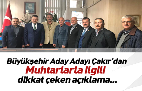 Her birinin sorunu ayrı ayrı ve çözüm konusunda muhtarlarımızla birlikte ortak hareket edip bu sorunları çözmeye çalışacağız. AK Parti Trabzon Büyükşehir Belediye Başkan aday adayı Davut Çakır, seçilmeleri halinde muhtarlar ile sürekli iletişim içerisinde olacaklarını vurgularken “Muhtarlarımız milletin kendisidir, onun için de muhtarlarımız başımızın tacıdır. Toplumumuzun en önemli hizmet odağı muhtarlarımızdır.