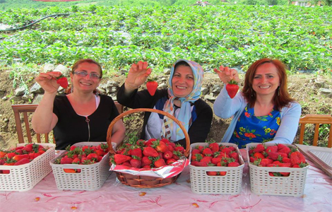 1 yılda 40 bin tüplü fidanla yaklaşık 170 ton çileğin üretildiği Çınarlık’ta, çilek hasadı Mayıs ayında başlayıp Ağustos ayında bitiyor.