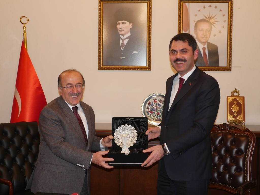 Çevre ve Şehircilik Bakanı Murat Kurum Trabzon Büyükşehir Belediye Başkanı Dr. Orhan Fevzi Gümrükçüoğlu’nu makamında ziyaret etti..