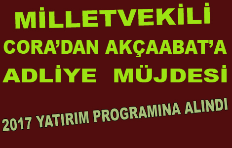 Konuşmasının sonunda Trabzon’u da unutmayan Salih Cora, Bakan Bekir Bozdağ’a hitaben “Trabzon’la alakalı; Trabzon’da Araklı, Of, Vakfıkebir ve en önemlisi Akçaabat adliye binalarının önümüzdeki yatırım programında yer almasını çok önemsiyoruz ve bu konuda desteğinize ihtiyacımız vardır.” dedi. 2017 yılı yatırım programında bu ilçelere yapılacak adliye binaları yer aldı.