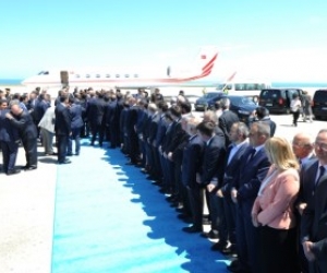 Cumhurbaşkanı Erdoğan'ı Trabzon Havalimanı'nda, Trabzon Valisi Abdil Celil Öz ve eşi Rukiye Öz, Garnizon Komutanı Albay Okçin Akşit, Büyükşehir Belediye Başkanı Orhan Fevzi Gümrükçüoğlu, askeri ve mülki erkan, milletvekilleri, sivil toplum örgüt temsilcileri ve vatandaşlar karşıladı.
