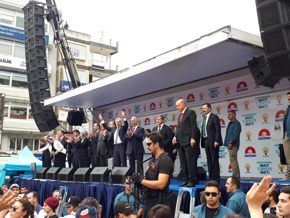 Maliyeti 4,2 katrilyon tl olan 20 adet yol projemiz devam ediyor. Bunların tamamı da 2 yıla kadar tamamlanıyor. Buradan çıkıp Ovit'e geçeceğim. Dev projenin açılışını yapacağız. Hızlı tren olur da Trabzon'dan mahrum bırakır mıyız? Erzincan-Trabzon arasında yüksek hızlı tren planlıyoruz.Trabzon'da çiftçiye 1,7 katrilyon destek verdik. Bay Kemal ne diyor, çiftçi aç diyor. Trabzon'a bir teknokent kurduk. Seçimin ardından fındıkla ilgili üreticilerimizi mağdur etmeyecek bir çözüm bulacağız.