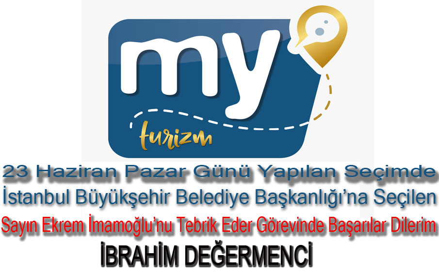 Yurdumuzun önemli turistik illerinden biri olan Trabzon’da MY turizm adıyla hizmet veren şirket sahibi İbrahim Değermenci İstanbul’da yapılan seçimde İstanbul Büyükşehir Belediye Başkanlığı'na Seçilen Ekrem İmamoğlu’nu Kutlayarak Yeni Görevinde Başarılar Diledi.