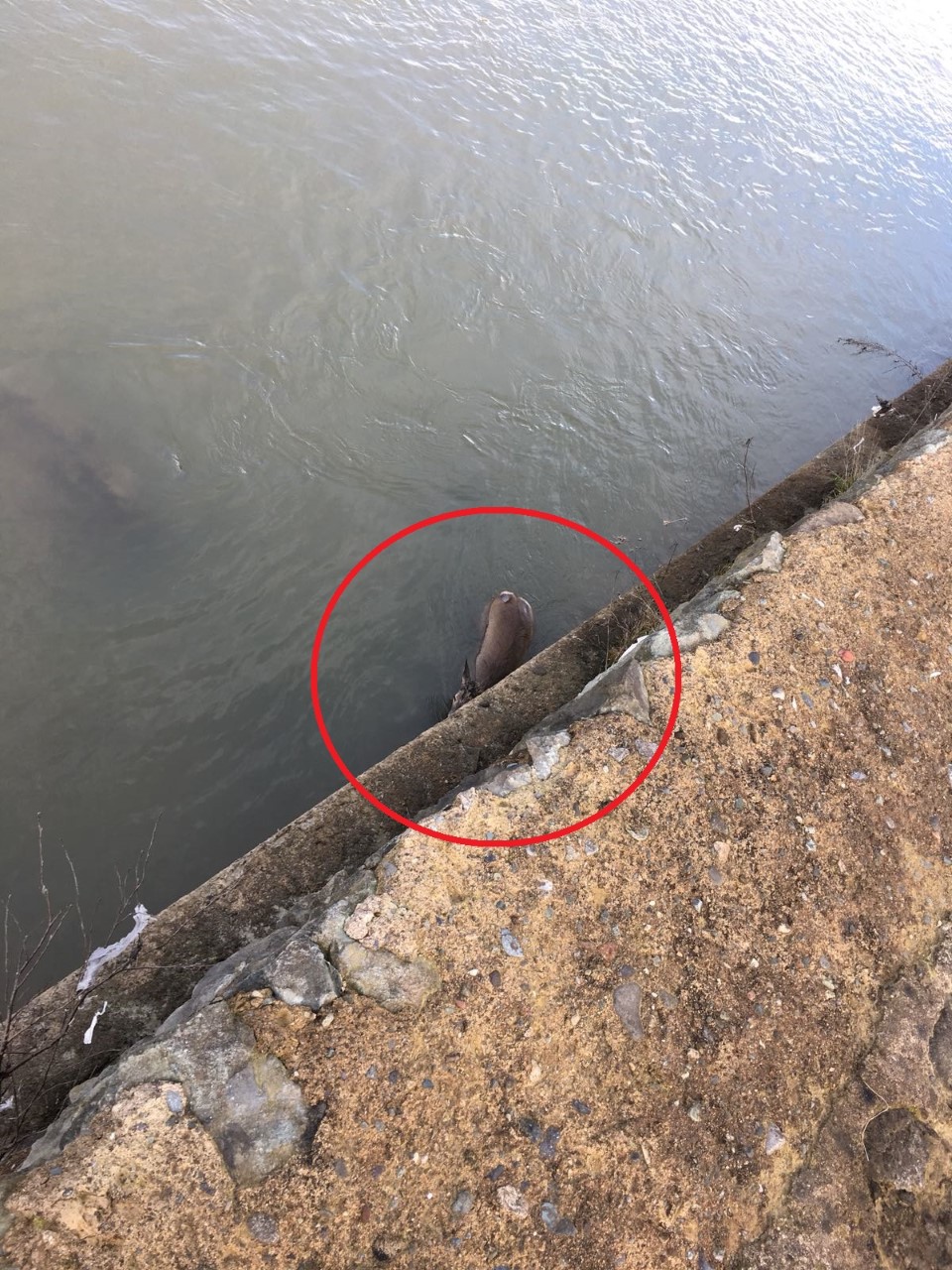 İtfaiye görevlileri dereye inerek karacayı kurtardı.
