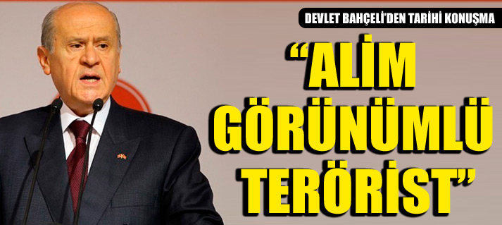 Bahçeli, darbe girişiminin planyıcısı olduğu ileri sürülen Fethullah Gülen'in liderliğini yaptığı cemaat hakkında da "Alim görünümlü bir terörist beddua seanslarıyla bu emri verdi. İhanetle Türk ve Türkiye düşmanlığıyla rekor kırdı. FETÖ Türkiye’nin kalbine nişan aldı. Kendi milletine saldırttı. Milletimizin varlığından rahatsız olan ne kadar çevre FETÖ onun sırtını sıvazladı" dedi.