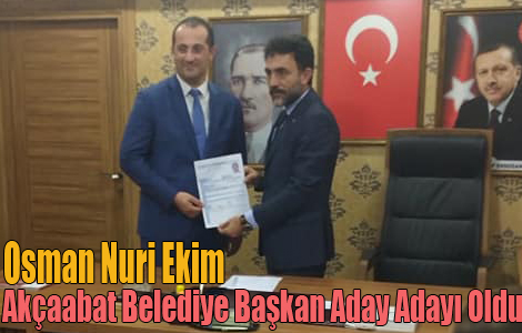 Ben Osman Nuri Ekim olarak Akçaabat’ın AK Parti’nin belediye başkanı olmak, Akçaabat’ ı daha ileriye taşımak için aday adayı olduğumu ve bu yeterliliği de yaşamış olduğumuz Belediyecilik tecrübemle ve sizin desteğinizle layıkıyla yapacağıma eminim. Akçaabat Belediye Başkan Yardımcısı görevinde bulunmam hasebiyle belediyemizin hazırladığı ve projelendirdiği işleri de halkımızın faydası doğrultusunda biran önce gerçekleştirmeye de aday olduğumu beyan etmek isterim. Bu projeleri teşkilatımızın ve Akçaabatlıların gücü olmadan gerçekleştiremeyeceğimizin de farkındayız.