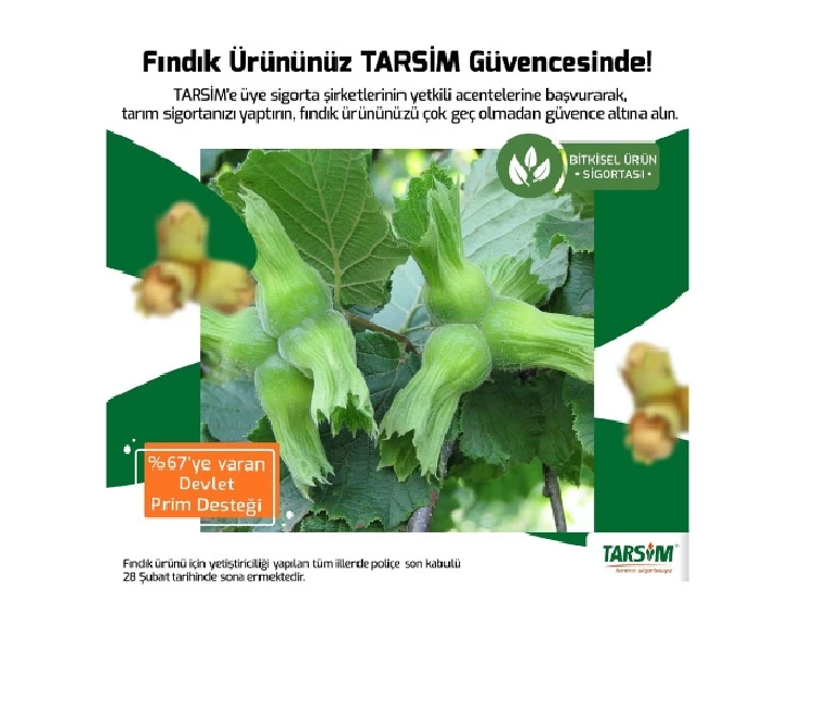 Son olarak, Eyüpoğlu, meyve ve fındık bahçelerinde oluşabilecek doğal afetlere karşı devlet destekli tarım sigortasının yaptırılmasını önererek, "28 Şubat 2024 son başvuru günüdür. Tarım sigortası, dolu, don, fırtına, hortum, yangın, deprem, heyelan, taşıt çarpması, sel ve su baskını gibi doğal afetlerin neden olduğu miktar kayıplarını kontrol altına almanın önemli bir yoludur" dedi.
