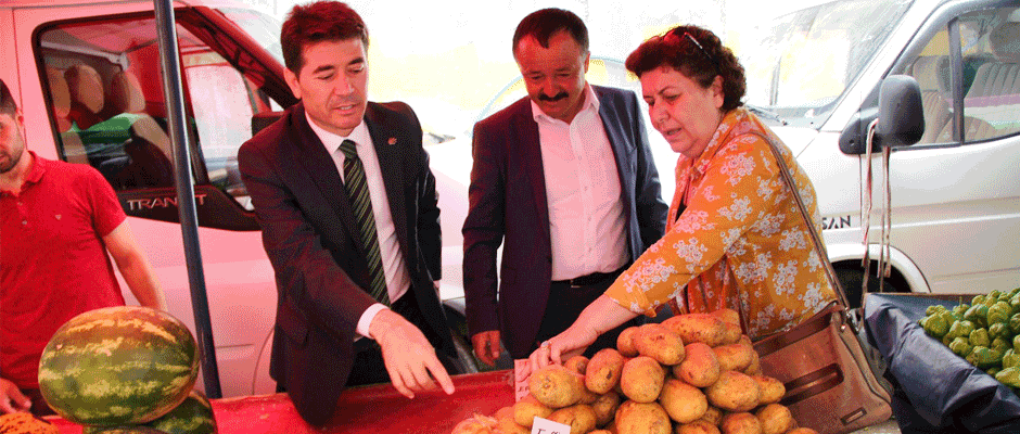 Soğan ve Patatesin pazar tezgahlarda 5 liraya satıldığını gören Ahmet Kaya, ‘Patates ve soğan 5 lira olmuş, böyle bir şey olur mu? Bu tablo bu ülkeyi yönetenlerin beceriksizliğinin ürünüdür. Bu beceriksizliği yaparsa ancak Ak Parti yapar. Patatesin üretildiği yer Ödemiş’te bile fiyat 4 lira’ dedi. Fiyatların çok yüksek olduğunu söyleyen pazarcı esnafı ise, ‘Biz fiyat söylerken bile utanıyoruz, yüzümüz kızarıyor’ dedi. Fiyatları Uçurdunuz Gıdadaki artışların durdurulamadığını söyleyen CHP Trabzon Milletvekili adayı Ahmet Kaya ise, “Patates ve soğanın kilosu 5 lira olduğu bir ülkede daha neyi konuşuyoruz. ‘Türkiye’yi uçurduk’ diyen AKP’lilere sesleniyorum. Evet uçurdunuz tezgahlardaki fiyatları uçurdunuz. Et fiyatlarını uçurdunuz, peynir fiyatlarını uçurdunuz, ekmeğin fiyatını uçurdunuz. Gıda fiyatları dolar gibi durdurulamıyor. Pazarda dahi bu kadar yüksek fiyattan satılan gıdaları fındığı, çayı para etmeyen üretici nasıl alacak? AKP iktidarı artık halktan özür dileyerek bir kenara çekilmeli. Vatandaşa bu kadar zulüm yapmamalı” ifadelerini kullandı.