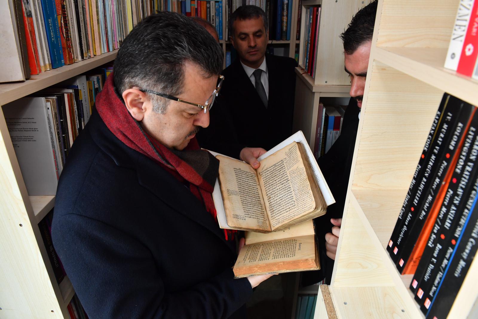 Kütüphanedeki kitaplarla ilgili Başkan Genç'i bilgilendiren Rahman Ayhan, herkesin kütüphaneden istifade edebileceğini söyledi.