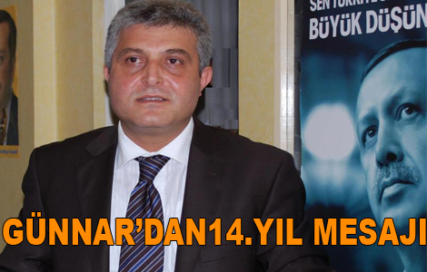 Milletvekili Günnar, ekonomik krizlerle boğuşan bir ülkenin 3 Kasım 2002 AK Parti iktidarı ile rahatladığını belirterek, “"Minareler Süngü kubbeler miğfer, camiler kışlamız Müminler asker" diyerek milletimizin yanında yer alarak, milletimize umut veren Kurucu Genel Başkanımız, Başbakanımız, Başkomutanımız Sayın Recep Tayyip Erdoğan’, çalışkanlığı ve başarısı ile 14 yılda milletimizin takdirini toplamış ve girdiği her seçimde oy oranları artırarak halkımıza hizmet etmiştir. Recep Tayyip Erdoğan için birileri "Muhtar bile olamaz" derken 14 Ağustos 2001 tarihinde kurduğu AK Parti'miz, kuruluşundan yaklaşık 15 ay sonra 3 Kasım 2002'de tek başına iktidar oldu. 3 Kasım İstikrarsız, ekonomik çöküntüde olan ve gerek eğitim gerek sağlık gerekse ulaşım gibi alanlarda yeterince hizmet alamayan aziz milletimizin miladıdır. Cumhurbaşkanımız 2001 de yaptığı bir konuşmada "Biz AK Parti'yiz. Bizim için her şey aziz insanlık tarihi kadar eski büyük milletimizin selameti için, her şey ilelebet yaşatmak ve yüceltmek arzusunda olduğumuz devletimiz için, her şey Türkiye için" sözleri ile yola çıkmıştır. 14 yıldır da her şeyin en iyisini hak eden bu Aziz Milletimize, hizmetkar olarak gecesini gündüzüne katarak millete hizmet etmiştir. 14 yılda ülkemizde eğitimden sağlığa, savunma sanayinden helikopter ve uçağa, duble yollardan tünellere kadar bir çok yatırım bu necip milletimizin hizmetine sunulmuştur. Bu hizmetler yapılırken dışarıda ve içerde bulunan düşmanlar, vatan hainleri, hizmetleri engellemek, gelişmekte olan ülkemizi gerilere götürmek için tüm seferber oldular. Seçkin milletimiz kan emicilerin oyunlarına gelmedi ve kendi içinden olan milletin adamına her anlamda destek çıktı. Kurucu Genel Başkanımız, Başkomutanımız Recep Tayyip Erdoğan’da, partimizin kurulduğu günden bu güne kadar Türkiye'yi muasır medeniyetler seviyesine çıkarma yolunda hızla ilerlemekteyiz. ülkemizin her türlü yatırımının, projesinin ve milli birliğinin kıskanılır hale gelmesi ile düşmanlar birleşerek topyekun üzerimize gelmeye başlamışlardır. Ancak milli birlik ve kardeşliğimiz sağlam ekonomik altyapımızla ve milli birlik ve kardeşliğimizle her çeşit saldırıların üstesinden geldik ve gelmeye devam edeceğiz. İslam ve Türk düşmanları ve onların taşeronları Fetö, PKK ve Daeş'in de hakkından geleceğiz inşaallah. Bu vesileyle AK Parti’mizin ilk defa tek başına iktidara gelişinin 14. sene-i devriyesi milletimize kutlu olsun. Nice ‘AK’ yıllara” dedi.
