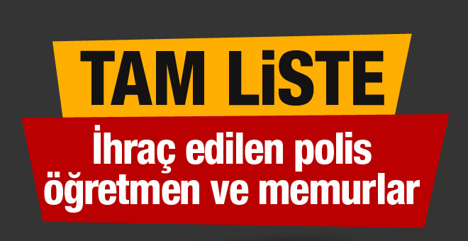 İhraç edilen öğretmenler - askerler - polisler - doktorlar ve memurların isim listesine aşağıdaki linklere tıklayarak ulaşabilirsiniz.