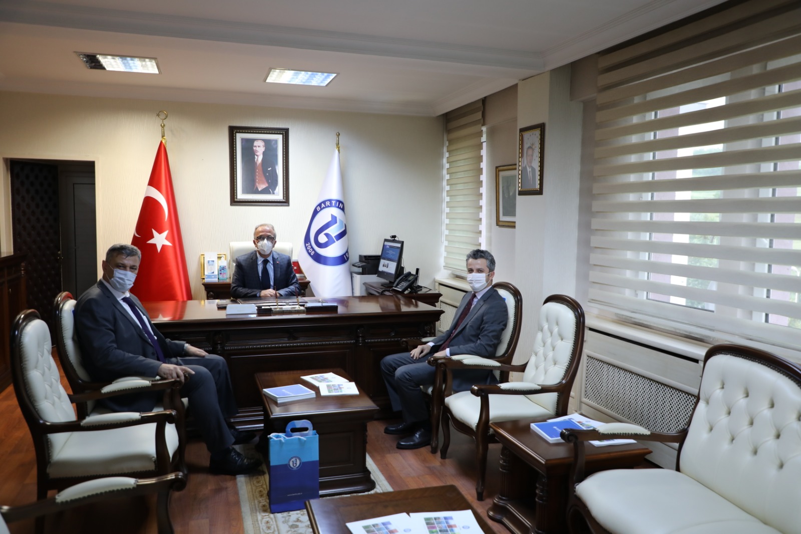 Ziyarette, Bartın Üniversitesi’nin kamu-üniversite-sanayi iş birliğinde bölgesel odaklı çalışmalarından bahsedilerek yapılabilecek ortak çalışmalar hakkında görüş alışverişinde bulunuldu.