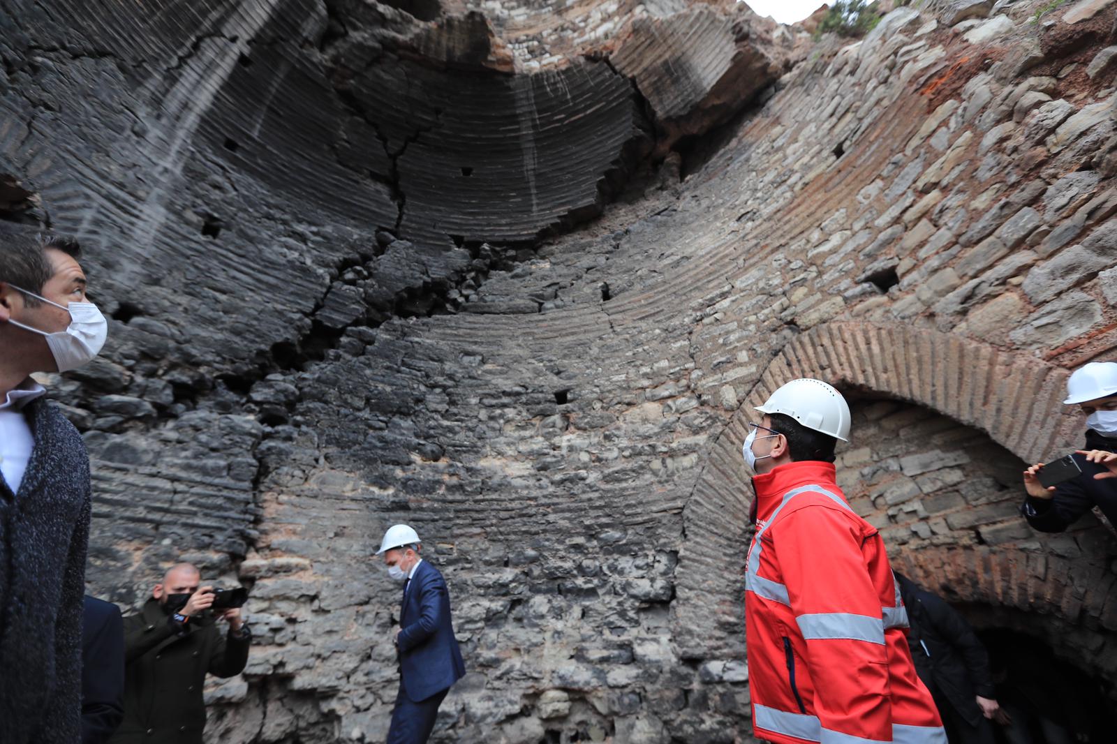 Çıplak gözle bakıldığında, surlardaki bakımsızlığın görülebileceğini belirten İmamoğlu, “Dünya mirası olan bu noktalarda uzun süre bir ihmal yaşanmış. Turistik açıdan ve kent mirası açısından bakıldığında ne yazık ki, bizlerin içini acıtıyor” dedi. Tarih boyunca surların pek çok şeye şahitlik yaptığını kaydeden İmamoğlu, “Fetih yaşanmış, fetih sonrası Osmanlı döneminin izleri var. Hemen yanı başında şekillenen yeni yaşamın izleri var. Ama ne acı ki, sonraki birtakım kullanımlar, burada yaşanan doğal afetler, depremler, hep şehrin üst üste binmesi yaşanmış; 25 yılı aşkın bir süredir hemen hemen hiçbir dokunuşta bulunulmamış” ifadelerini kullandı.