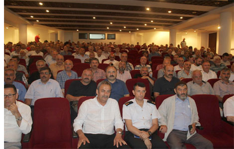 Toplantıya ilçe mahalle muhtarları daire amirleri ve konuyu öğrenmek amacıyla çok sayıda vatandaş katıldı.